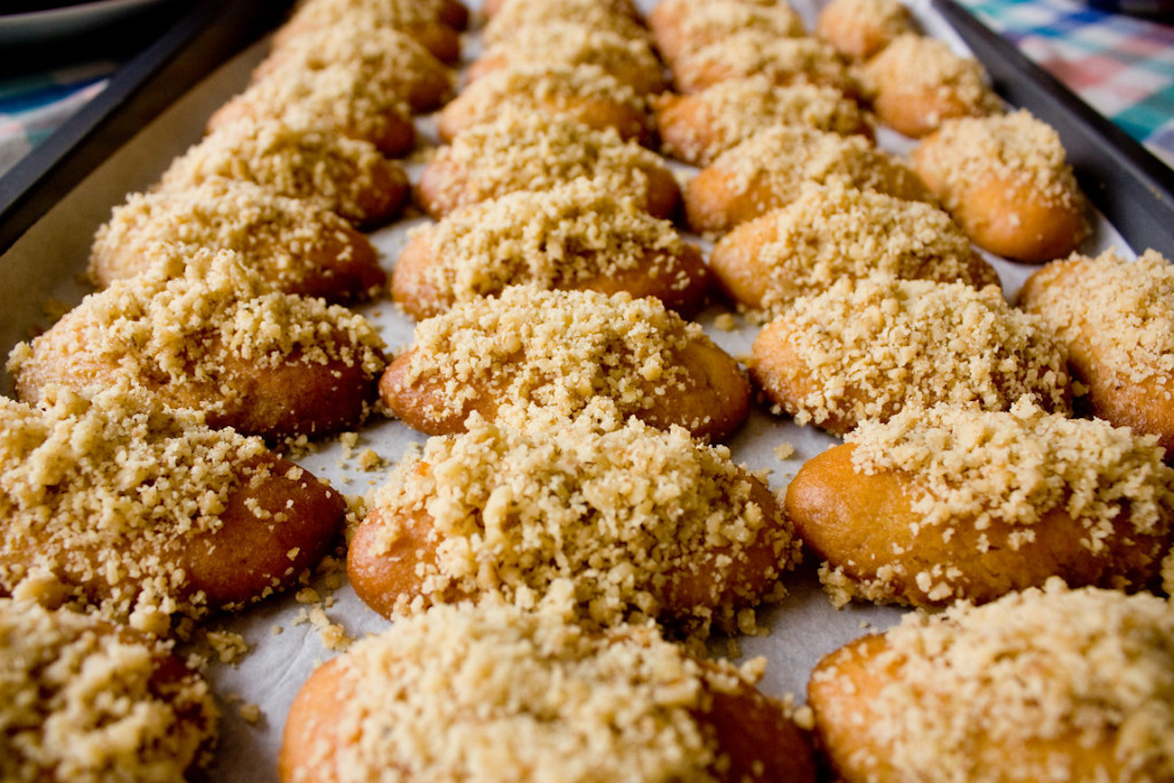 Christopsomo is translated as “Christ’s bread” and it symbols prosperity and the joy of Christmas. It is not baked at home so often because many bakeries now sell it. The round white bread is covered in sesame and then decorated with a cross in the center. Sometimes walnuts, symbolizing fertility, are also added on top. In Crete in particular, the decorations are very important. High quality honey, rosewater, nuts, and spies like cinnamon and clove are used.