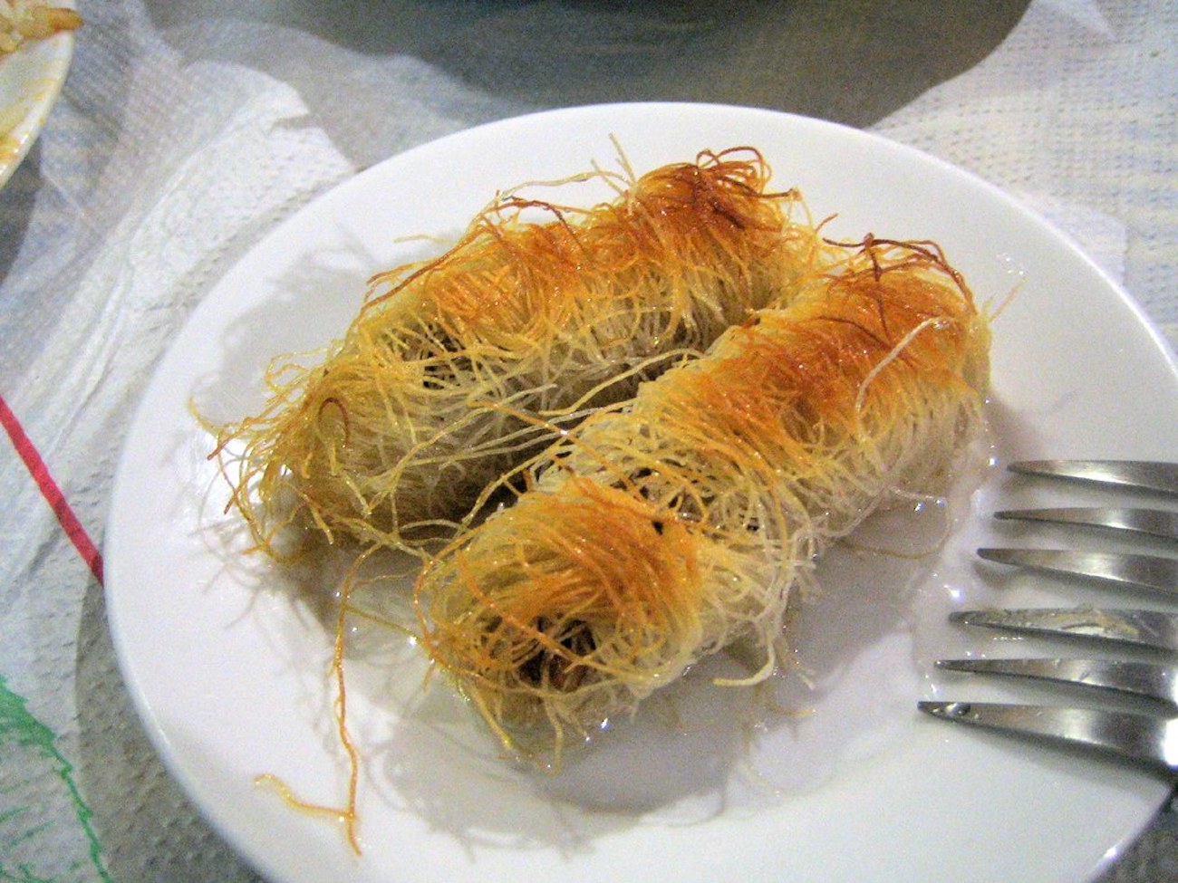 Kataifi is a famous sweet treat that is also enjoyed in other areas of the Middle East. It is made of shredded phyllo pastry, honey, sugar syrup, and nuts. The kataifi is then baked to make it crispy, and its unique texture makes it a much-loved dessert. Kataifi in Turkish is known as kadaif and kanafeh if you are in the Balkans. Kaitafi is usually made with walnuts, which add a nice crunch.