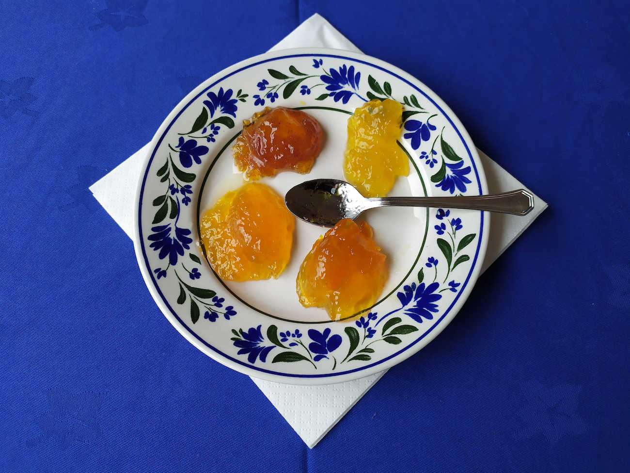 Spoon sweets are a simple dessert, featuring preserved fruit in sweet syrup. This tradition has its roots in the fourteenth century, when the Byzantines adopted the custom from Arab traders of offering a spoon sweet to visitors. There are many types of spoon sweets in Greece, because you can make it with many types of fruits. Cherry, fig, or orange rind are common varieties. Sometimes, spoon sweets are paired with Greek yogurt.