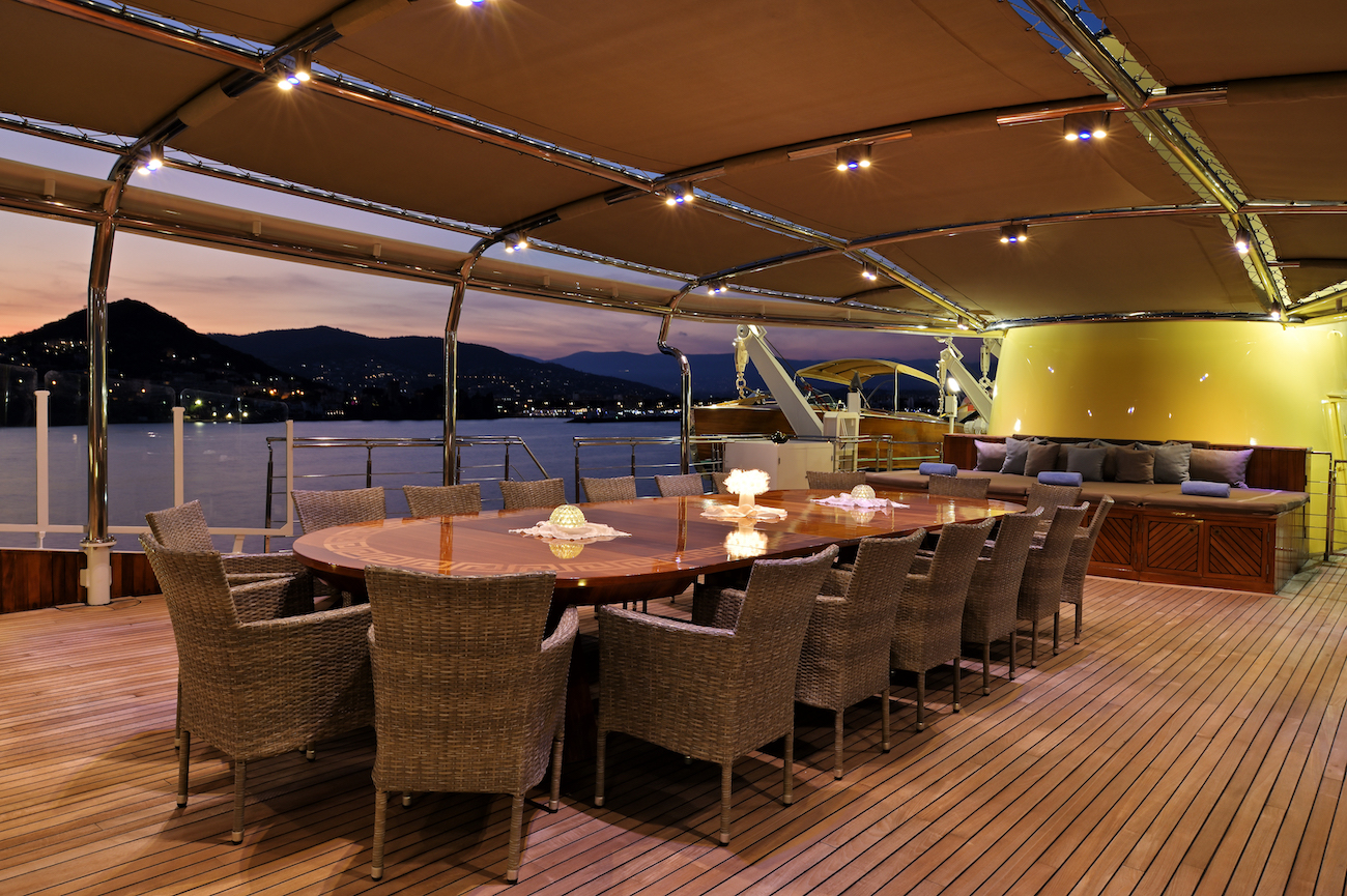 Der vielleicht berühmteste Teil des Bootes ist der restaurierte Swimmingpool, der mit einem Minotaurus-Mosaik verziert ist und sich in eine Tanzfläche verwandeln lässt.