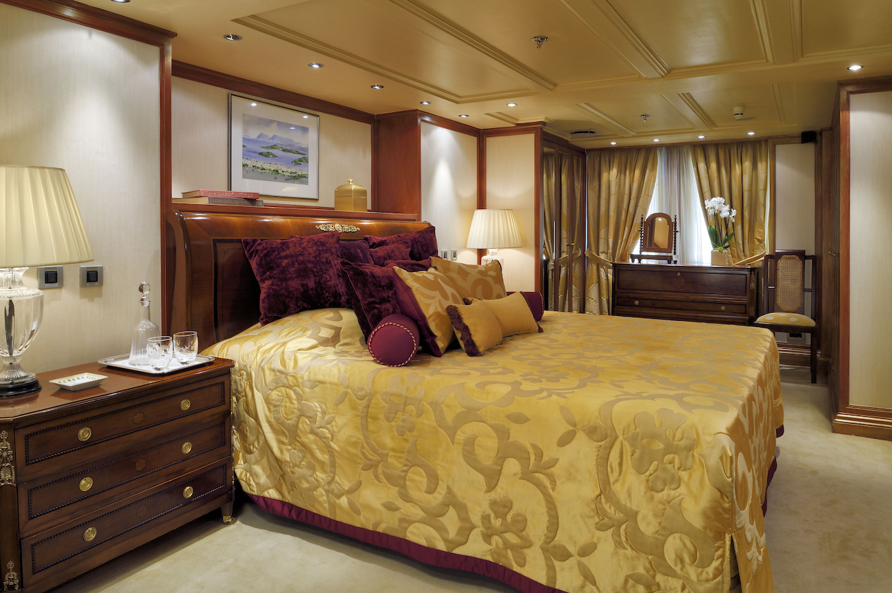 Jede Suite auf dem Boot wurde nach einer anderen Insel in Griechenland benannt. So beherbergten beispielsweise die Suiten Santorini, Mykonos, Lesbos, Andros, Kreta, Rhodos und Korfu die Gäste. Jedes Zimmer war mit maßgefertigten Holz- und Steinarbeiten aus Materialien von den griechischen Inseln ausgestattet.
