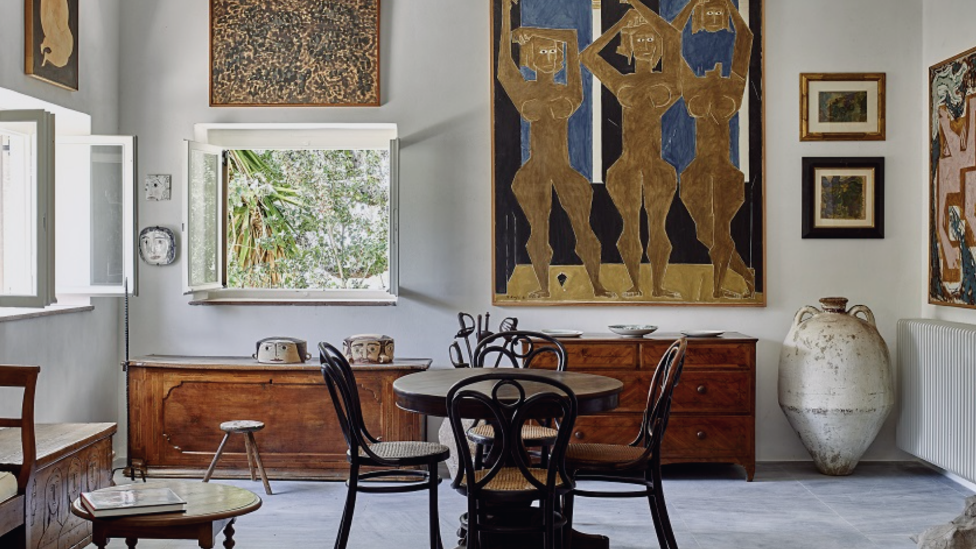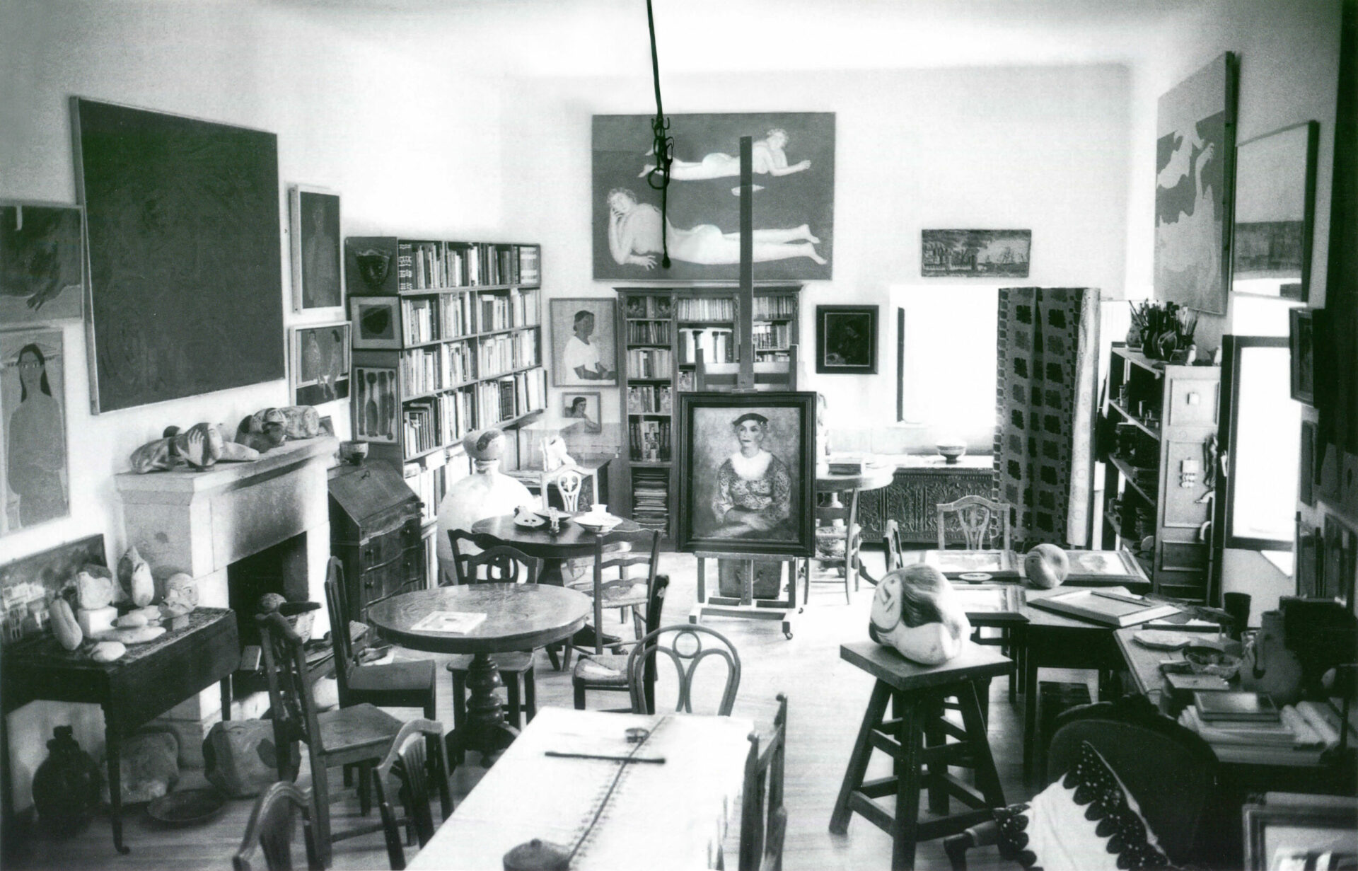 Der Maler Nikos Nikolaou und seine Frau Angela kamen 1964 nach Ägina, und dieses Haus wurde zu einem beliebten Treffpunkt für Kunstliebhaber und Schriftsteller. Die Renovierungsarbeiten begannen 2019, als das Haupthaus renoviert und fünf Gästehäuser gebaut wurden. Diese Arbeiten wurden mit größtem Respekt für den Maler und seine Frau durchgeführt, um die herzliche Gastfreundschaft, die sie ihren Gästen entgegenbrachten, zu bewahren. Im vorderen Raum, den Nikolaou als Wohnzimmer nutzte, wurden Kunstwerke und Gegenstände an ihrem ursprünglichen Platz belassen.