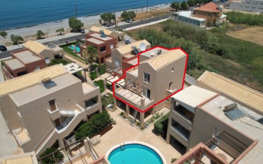 In einem Wohnkomplex am Meer in Maleme, Kreta, gelegen, bietet dieses Maisonette-Haus mit drei Schlafzimmern ...