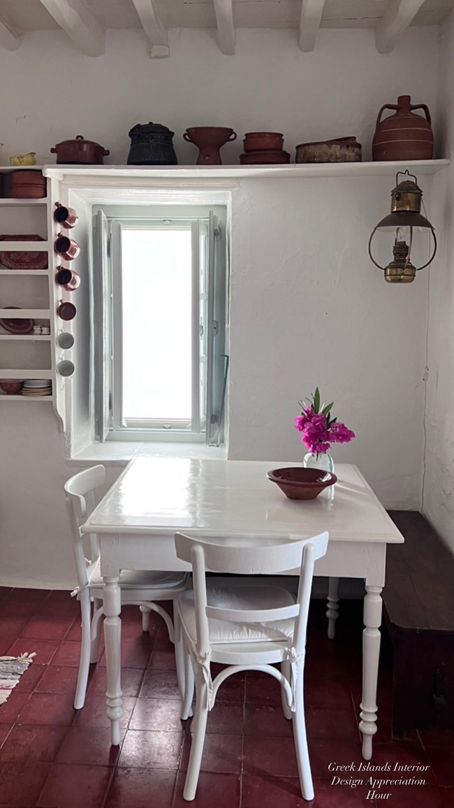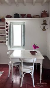 She later moved to Delfini, a coastal area on Syros, where she now owns several smaller properties. The Delfini area is known for its tranquil atmosphere and pristine, clear waters.