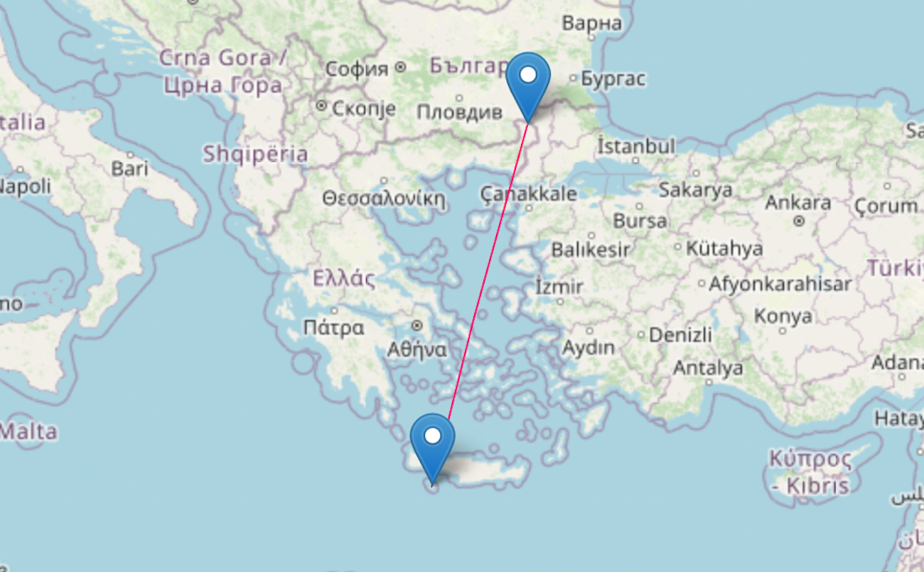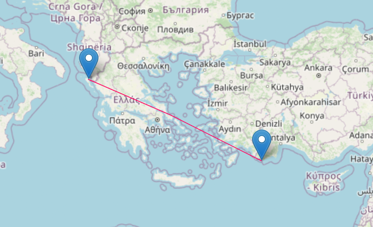 Αναλάβαμε να μετρήσουμε τη απόσταση μεταξύ των πιο απομακρυσμένων σημείων της Ελλάδας (βόρεια, νότια, ανατολικά και δυτικά). Η μεγαλύτερη απόσταση ήταν μεταξύ της Κέρκυρας (ένα νησί του Ιονίου στη βορειοδυτική Ελλάδα) και του Καστελόριζου, το πιο απομακρυσμένο νησί της νοτιοανατολικής Ελλάδας. Η απόσταση μεταξύ αυτών των δύο νησιών είναι 946,6 χιλιόμετρα.
