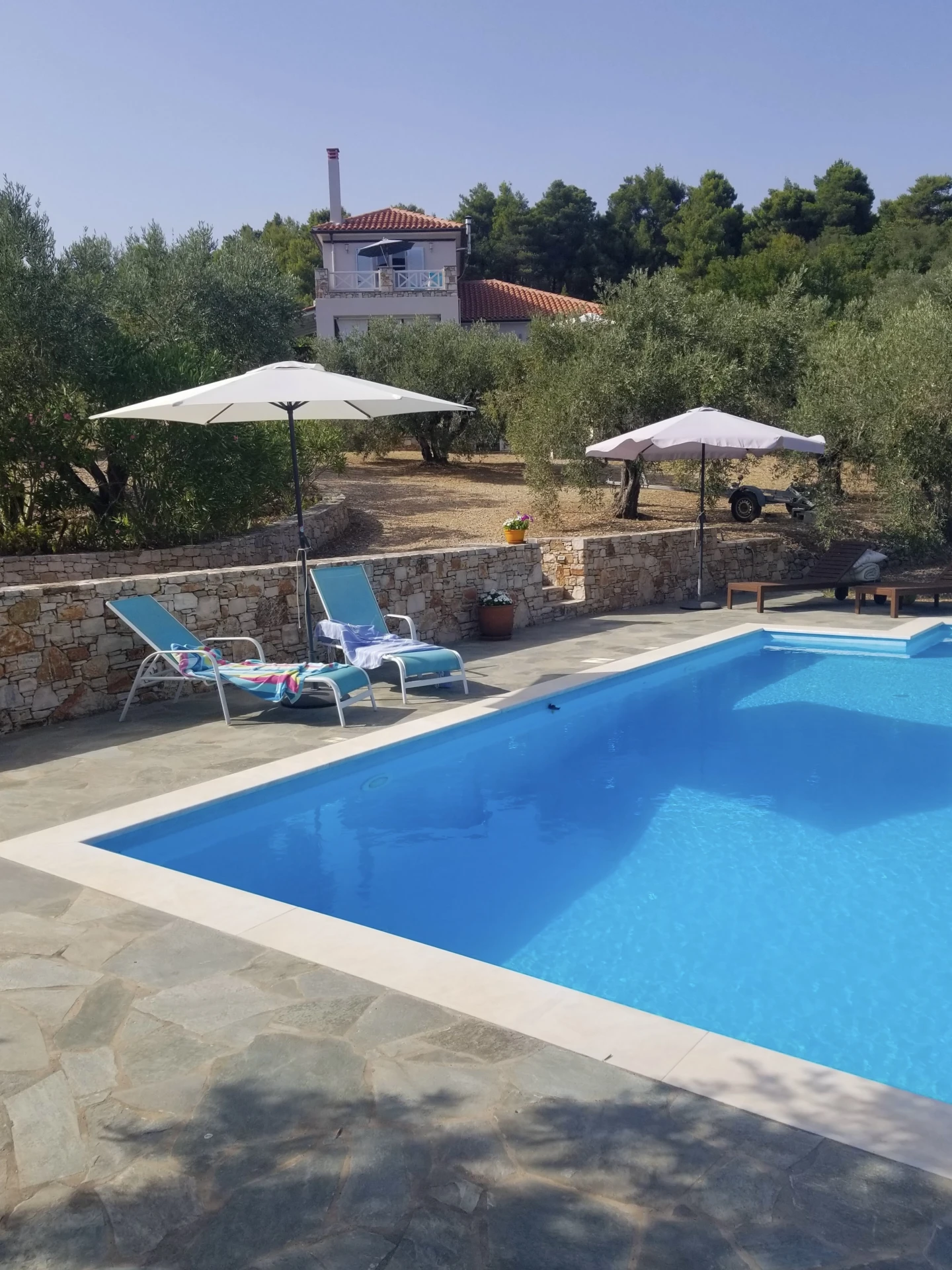 Βίλα 127 τ.μ. με νότιο προσανατολισμό στην Αλόννησο, με θέα στη θάλασσα, μεγάλη πισίνα, 3 υπνοδωμάτια, 2 μπάνια, ευρύχωρες βεράντες και νησιώτικη γοητεία. Χτισμένη σε οικόπεδο 4.000 τ.μ. γεμάτο ελαιόδεντρα, προσφέρει ιδιωτικότητα, άνεση και υπέροχη ζωή στον εξωτερικό χώρο.3