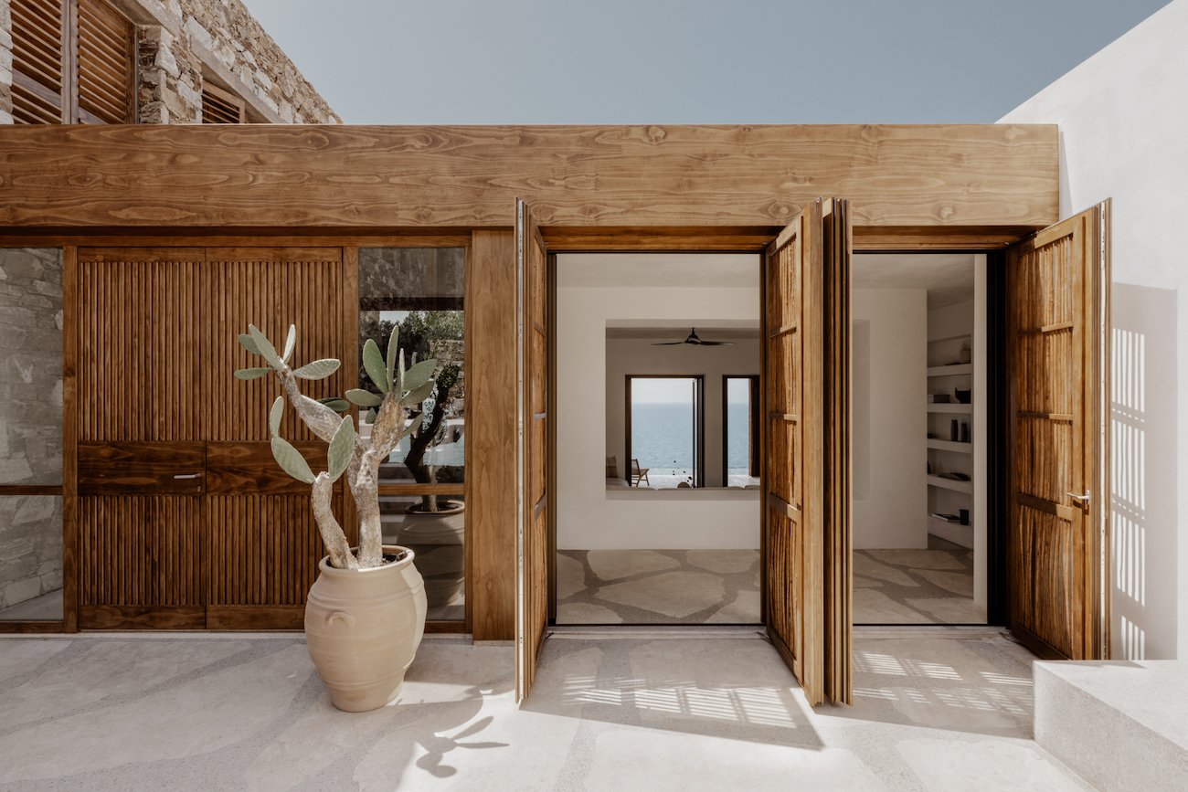 The design blends natural materials, like wood and stone, with the studio’s Scandinavian mindset and organic minimalism, while also with some Japanese architectural influences. The routes through the building are designed to create vistas and journeys which let you enjoy the natural beauty of the Cretan scenery. The “Slow living” lifestyle is contained within the homes’s architecture.
