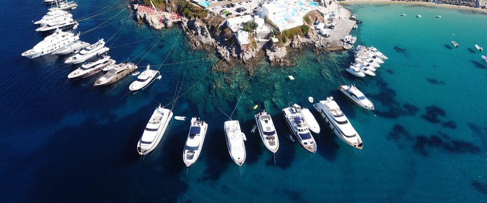 Gradually, super-wealthy travelers to Greece began to drop anchor at Psarou Bay, which became a popular harbor for superyachts because the water is deep and the location protected boats from the powerful Meltemi winds.