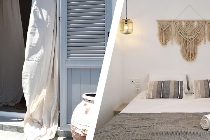 In the bedroom, you can use lightweight fabrics for the bed. You can match this style in the living room with lightweight curtains. In almost all Greek houses you will see how curtains are used on the windows even if there are shutters, an element that is not so common in other countries.