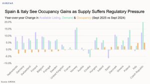 Hoewel het gemiddelde dagtarief (ADR) licht daalde naar €169 en de inkomsten per beschikbare huurwoning (RevPAR) daalden naar €100, blijft de totale bezettingsgraad gezond op 59%, het bewijs van een markt die volwassen wordt en zich aanpast aan toerisme het hele jaar door in plaats van alleen te vertrouwen op de piek van 76% in augustus.