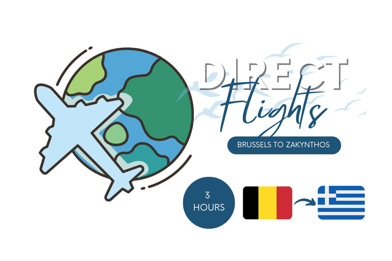 From Belgium, there are direct flights to Zakynthos from Brussels, at about three hours. If you are able to travel north to Amsterdam, you can also drive the three hours and get a direct flight from the Netherlands to Zakynthos.