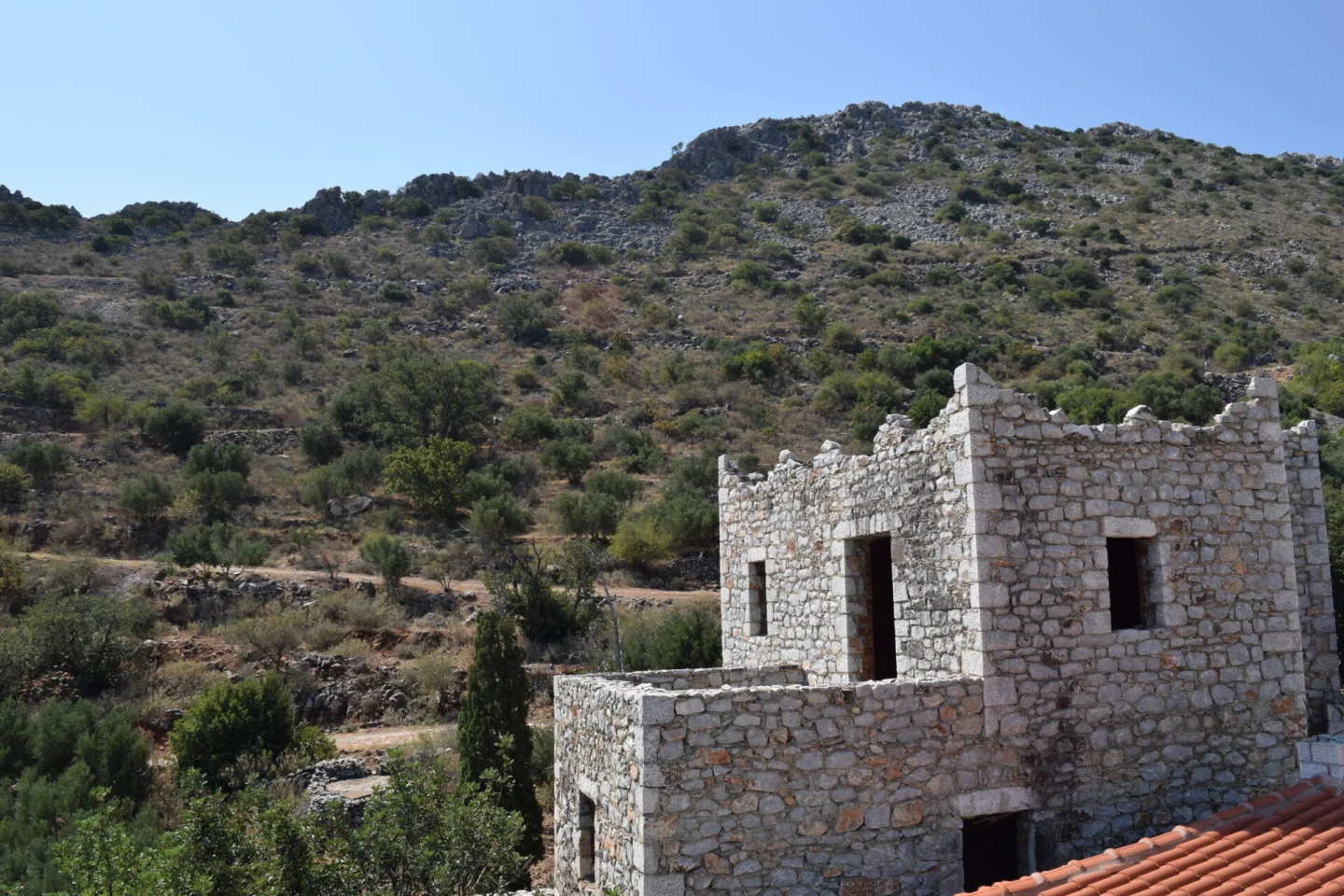 Two key factors influenced the development of Mani’s architecture. First, the region often served as a refuge during times of conflict. Second, the area's limited natural resources shaped the way buildings were constructed. In this context, constructing a tower was vital for each family’s defense. Around the tower, small, square houses were built, designed to provide additional protection.